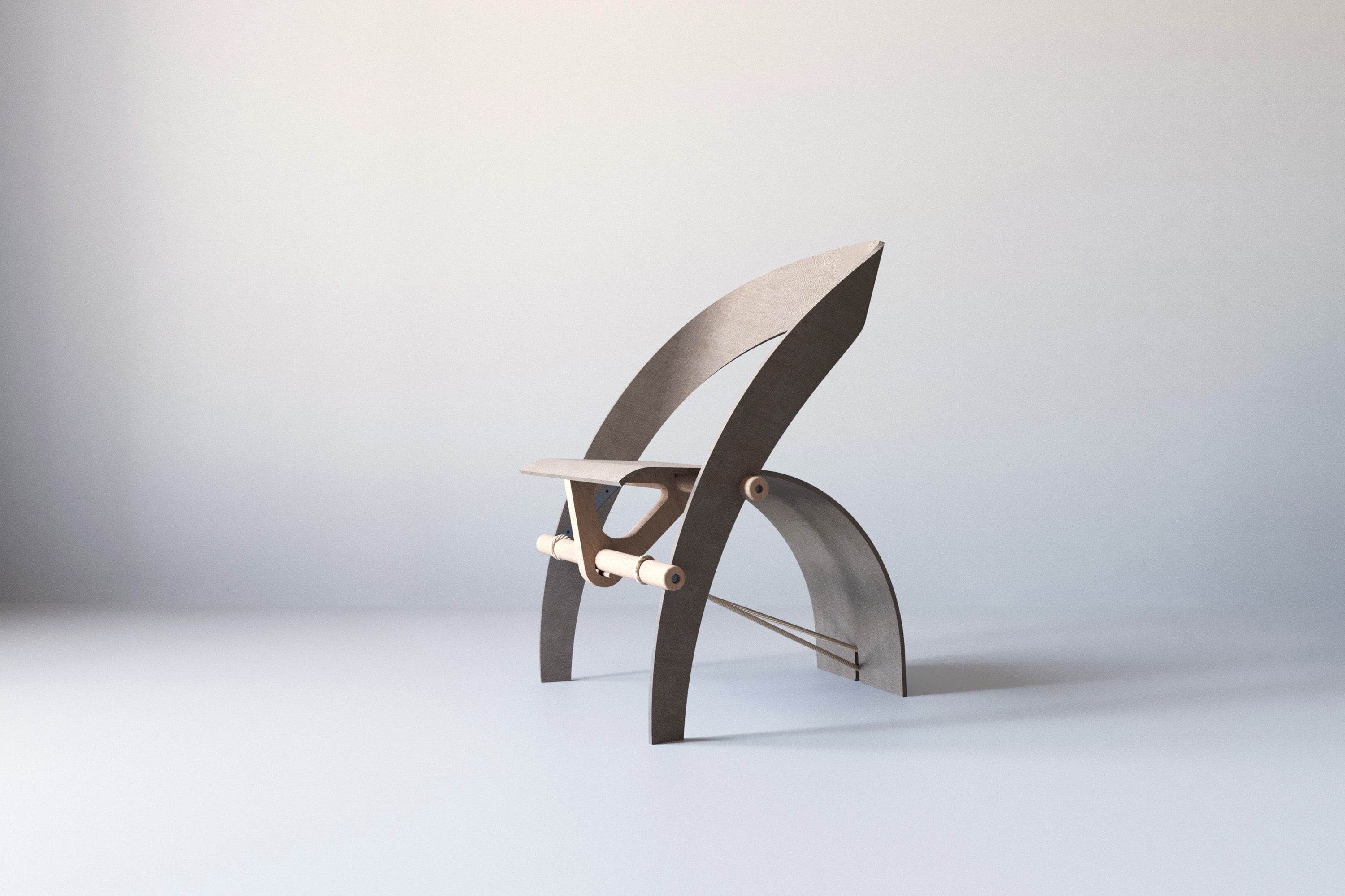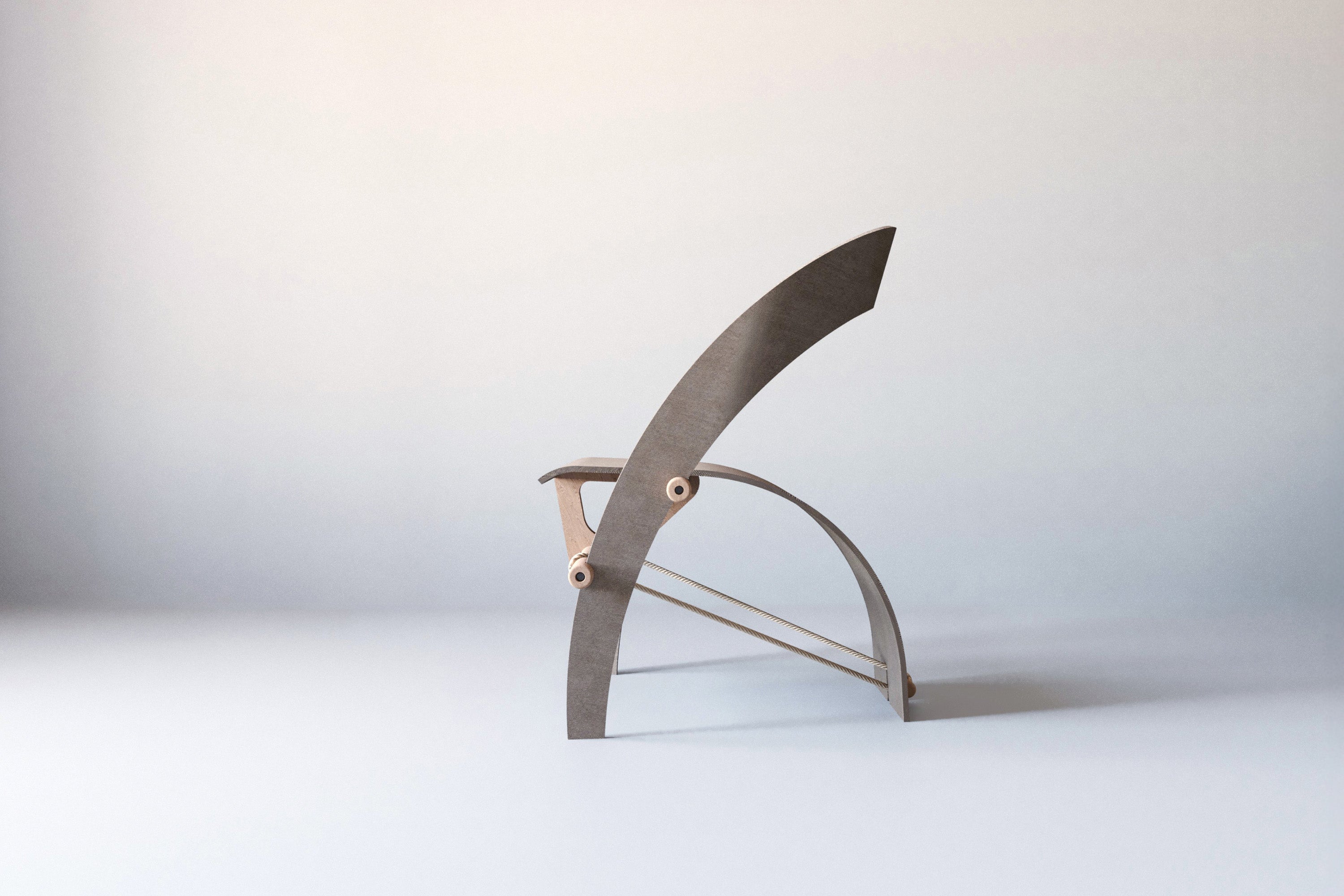 A chair for more than sitting. Held by fibre, gravity, and continuous redistribution of tension.